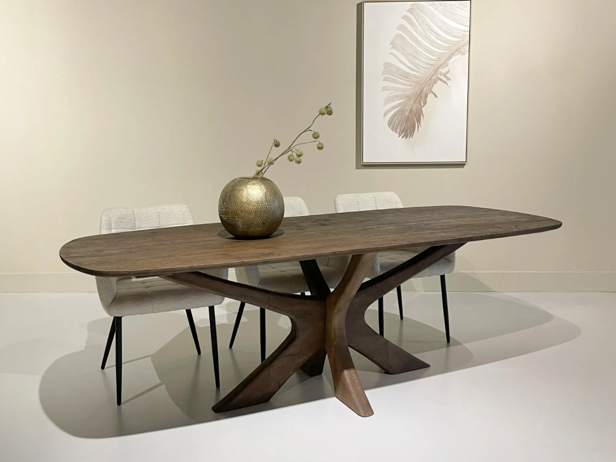 Der Brix Mon T220-250 ist ein einzigartiger Tisch mit einem separaten Bein. Dieser Tisch ist mit einer stilvollen Holzplatte ausgestattet und zeichnet sich durch das separate, organisch geformte Spinnenbein aus. Die Basis dieses einzigartigen Tisches mit separatem Bein ist ein Holzbein.