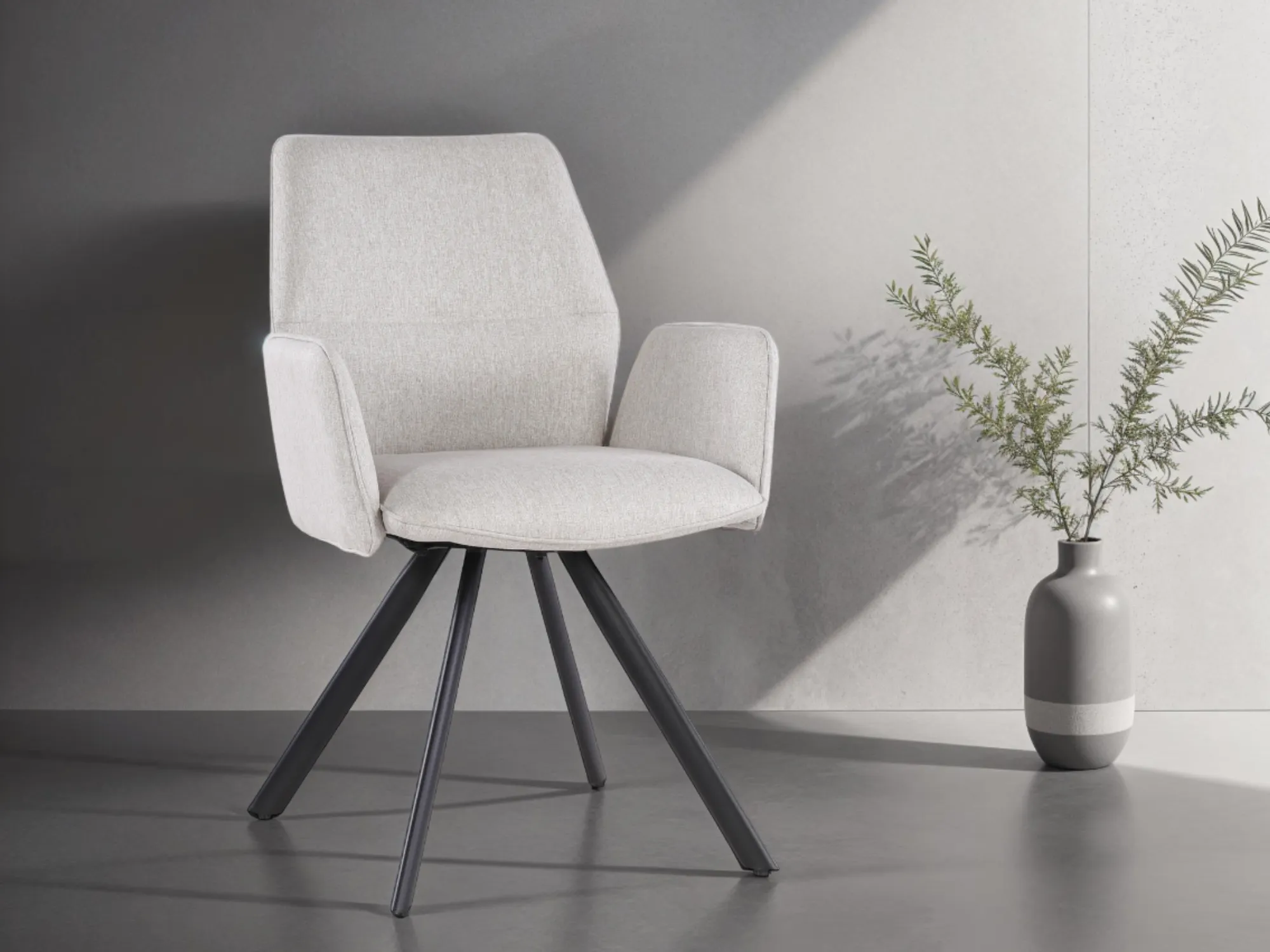 Die Serie Dia ist ein schwenkbarer Designer-Esszimmerstuhl mit schickem Aussehen. Dieser Esszimmerstuhl verfügt über eine ergonomische Schale, ein drehbares Untergestell und zeichnet sich durch seine Design-Armlehne aus. Die Basis dieses Esstischdrehstuhls ist ein schlankes Metallbein.