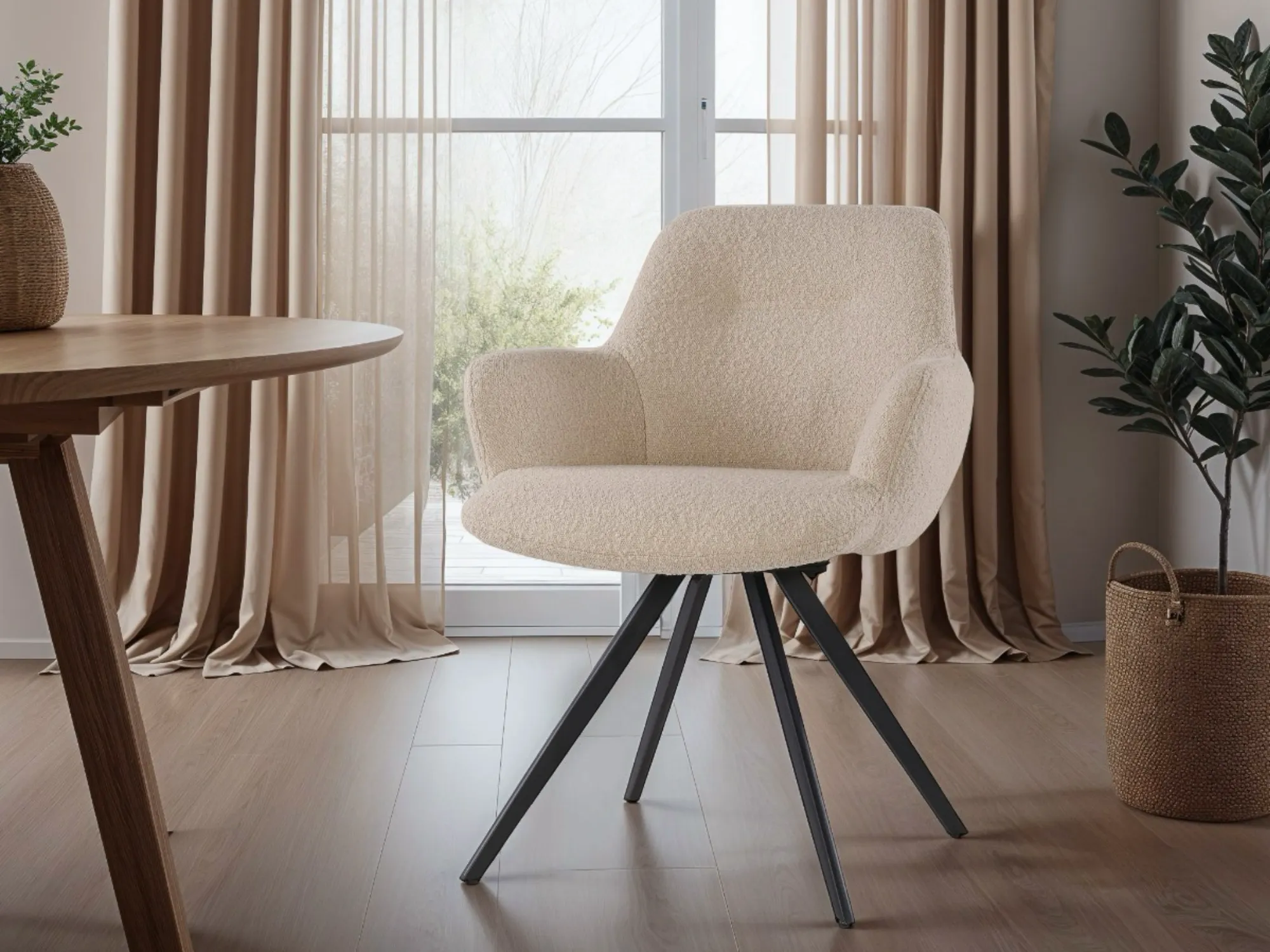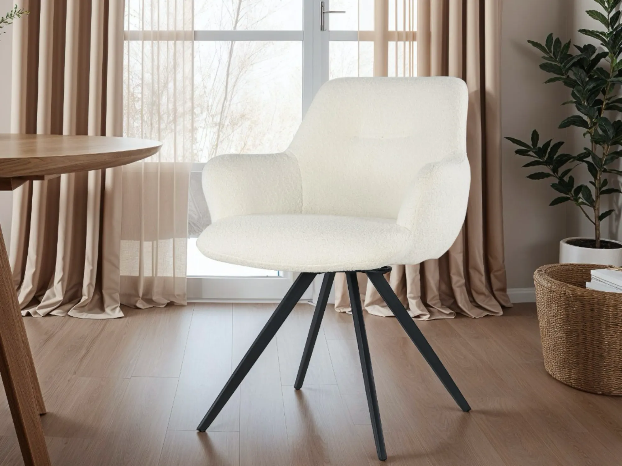 Die Serie Dor ist ein moderner Esszimmerstuhl mit einer drehbaren Schale. Dieser Esszimmerstuhl hat eine moderne Armlehne, ein drehbares Untergestell und eine ergonomische Schale. Die Basis dieses modernen Esszimmerstuhls ist ein schlankes Metallbein.