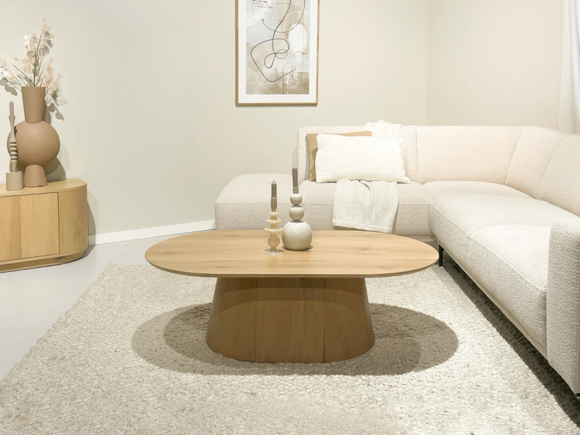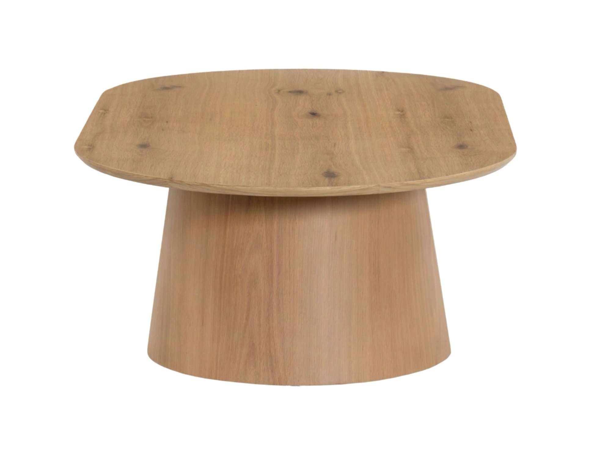 Der Nov SO120 ist ein trendiger Couchtisch in raffinierter Eichenoptik. Dieser moderne Tisch mit einer ovalen Holzplatte zeichnet sich durch seine Eichenoptik und sein ovales Untergestell aus. Die Basis dieses eleganten Couchtisches ist ein Holzbein.