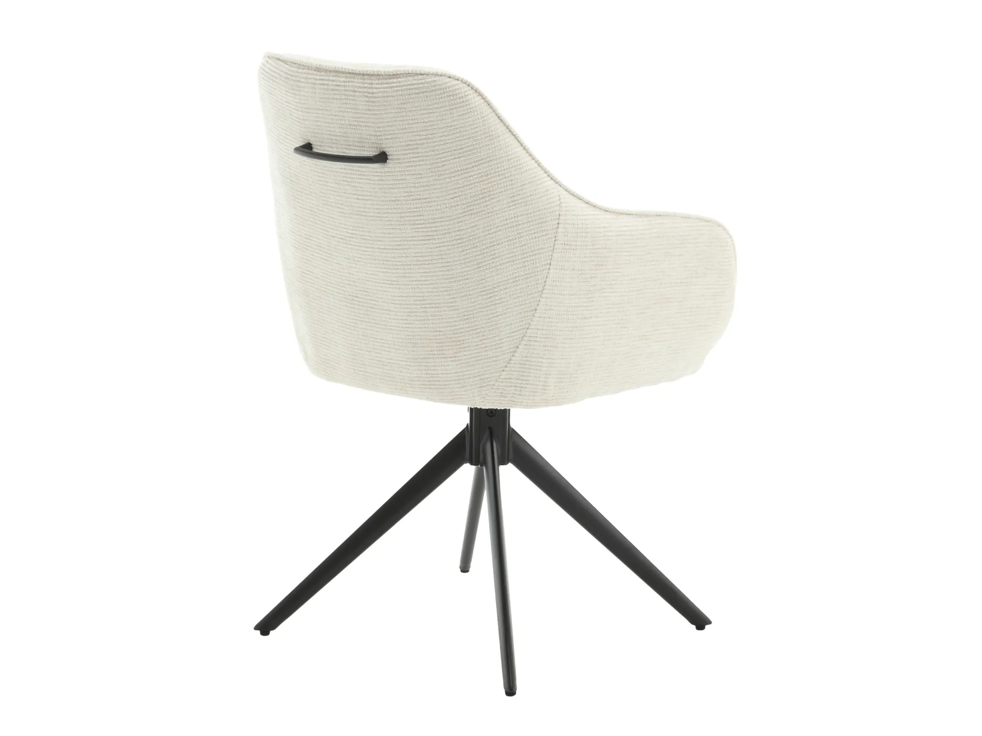 Die Serie Tho ist ein drehbarer Esszimmerstuhl mit einem modernen Design. Dieser Esszimmerstuhl verfügt über eine Armlehne, Stoff mit gerippter Oberfläche, ein Drehgestell und einen großzügigen Sitz mit ergonomisch geformter Arm- und Rückenlehne. Das Gestell dieses Esszimmerdrehstuhls besteht aus einem schlanken Metallfuß.