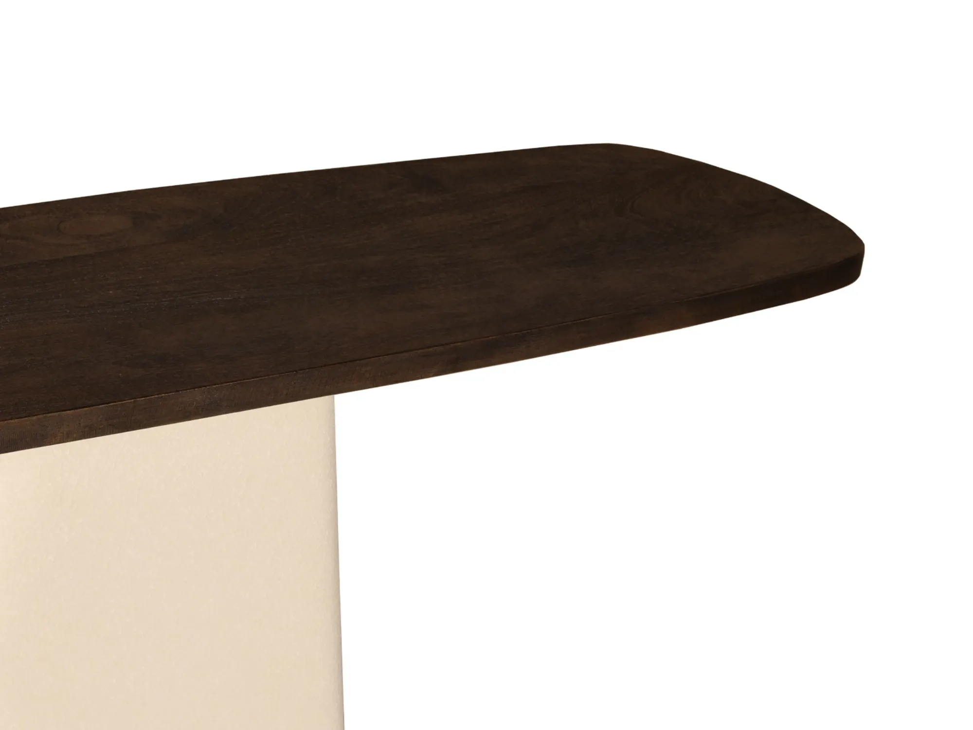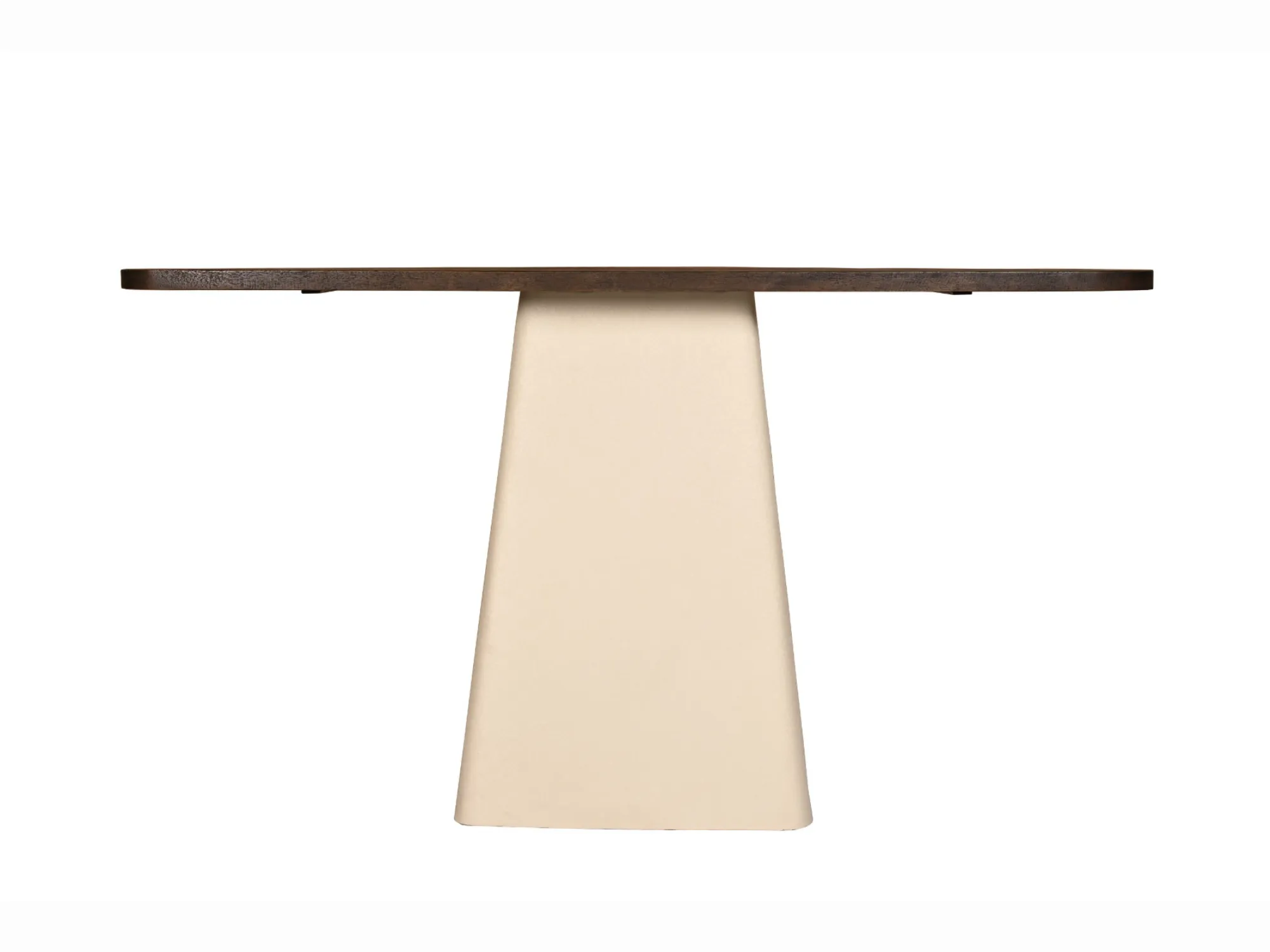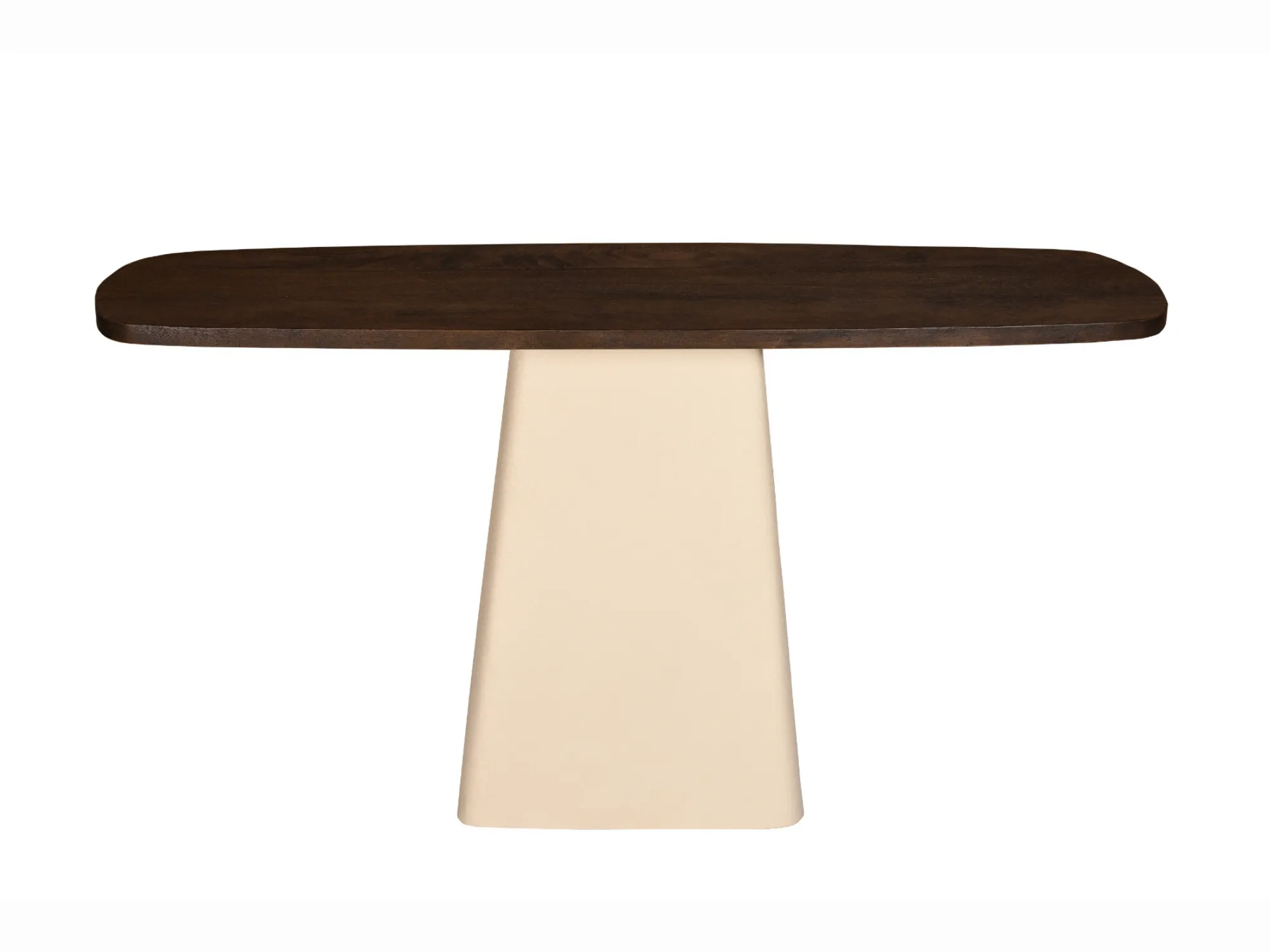 The Brix Mar D140 is a trendy sideboard beige with wood. This slim sideboard comes with a wooden top. This trendy side table beige with wood is characterised by the combination of dark brown hardwood and beige base. The base stands on a metal leg. This furniture consists of 2 parts.