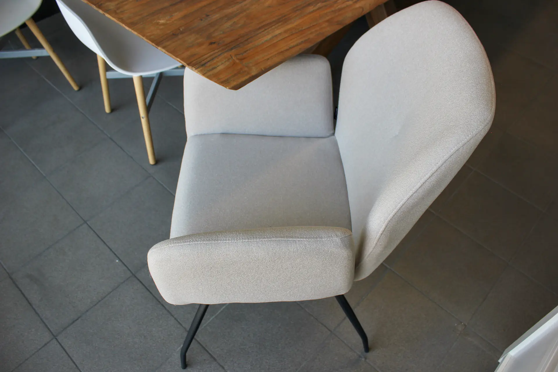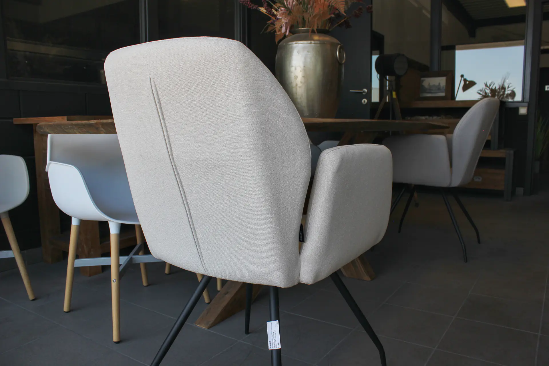 This comfortable chair with a Scandinavian look has a contemporary appearance and therefore fits nicely in an industrial or modern interior. In addition to a contemporary interior, it also looks great with a contemporary or rustic style. The luxurious chair can serve as a trendy dining chair, desk chair, or sustainable design armchair in the kitchen, dining room, or living room.