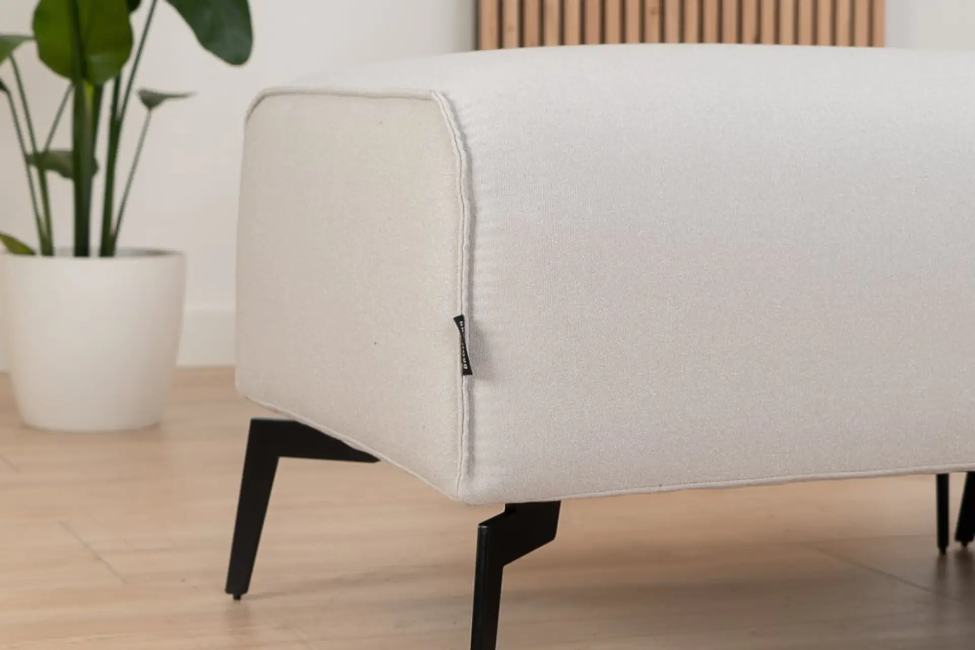 Pouf durable, moderne et confortable avec des éléments ronds en polyester recyclé et une base en métal noir. Le Lentur 1Z POL est un pouf luxueux au look moderne. Ce pouf confortable est composé d'éléments arrondis en polyester recyclé, un tissu durable fabriqué à partir de 100% de bouteilles en plastique recyclées. Il s'agit d'un tissu mélangé très robuste, avec un score Martindale de 55 000, ce qui le rend durable et résistant. Le tissu est doux et confortable au toucher, et il est également déperlant ! La base de ce pouf est un pied en métal noir. Il est agréable à combiner avec les canapés 2,5 places ou les canapés d'angle Lentur de TEAK2. Il est ainsi possible de créer un canapé généreux avec un fauteuil long ou un canapé en U lorsqu'il est associé au canapé d'angle. Votre coin salon n'a jamais été aussi confortable ! 😉