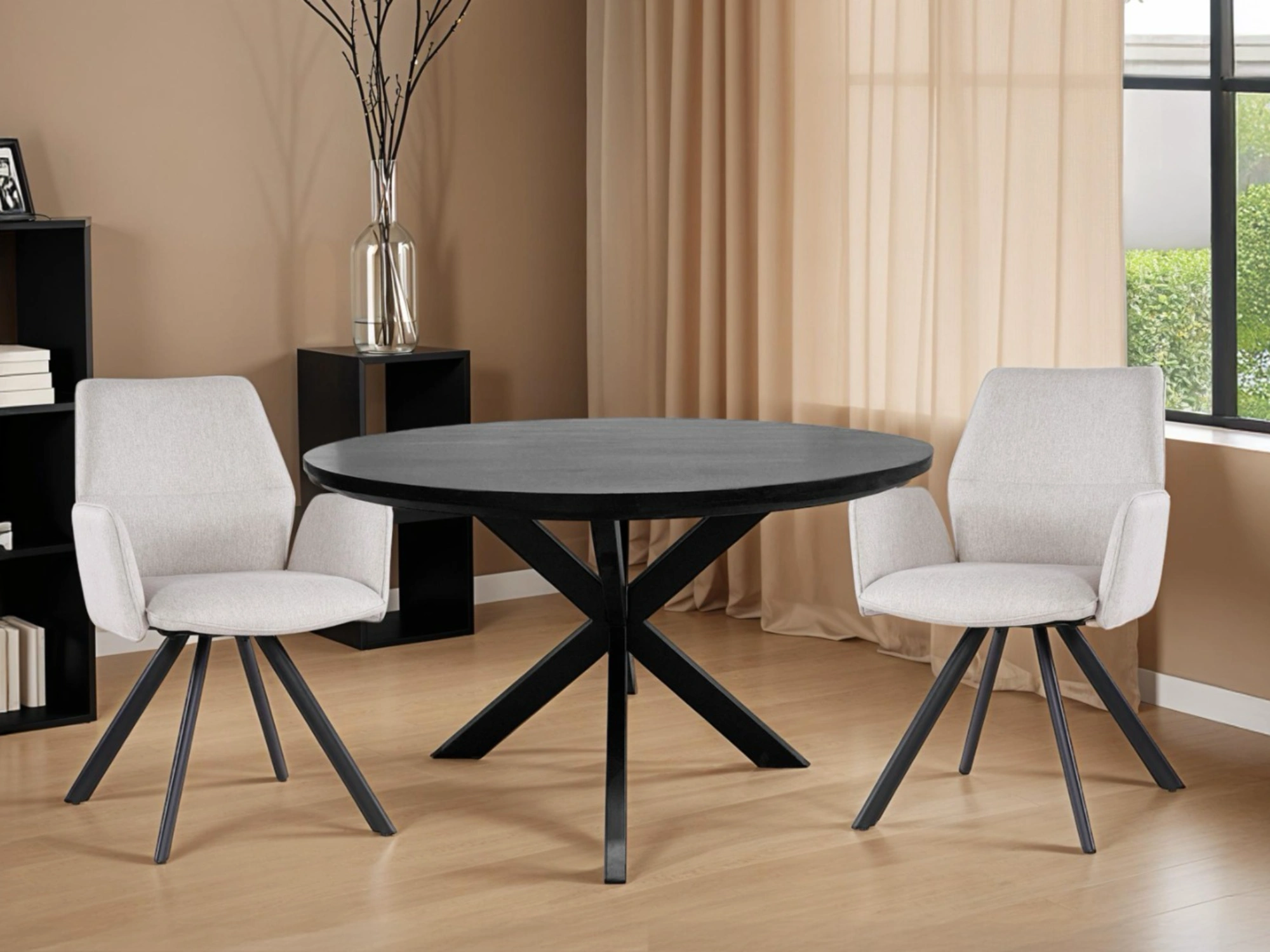 La Jes TR120-130Z est une table de salle à manger design noire en bois dur durable avec un pied en métal. Cette table est livrée avec un pied araignée et un plateau rond. La base de cette table de salle à manger ronde noire est un pied en métal de type araignée / matriciel.
