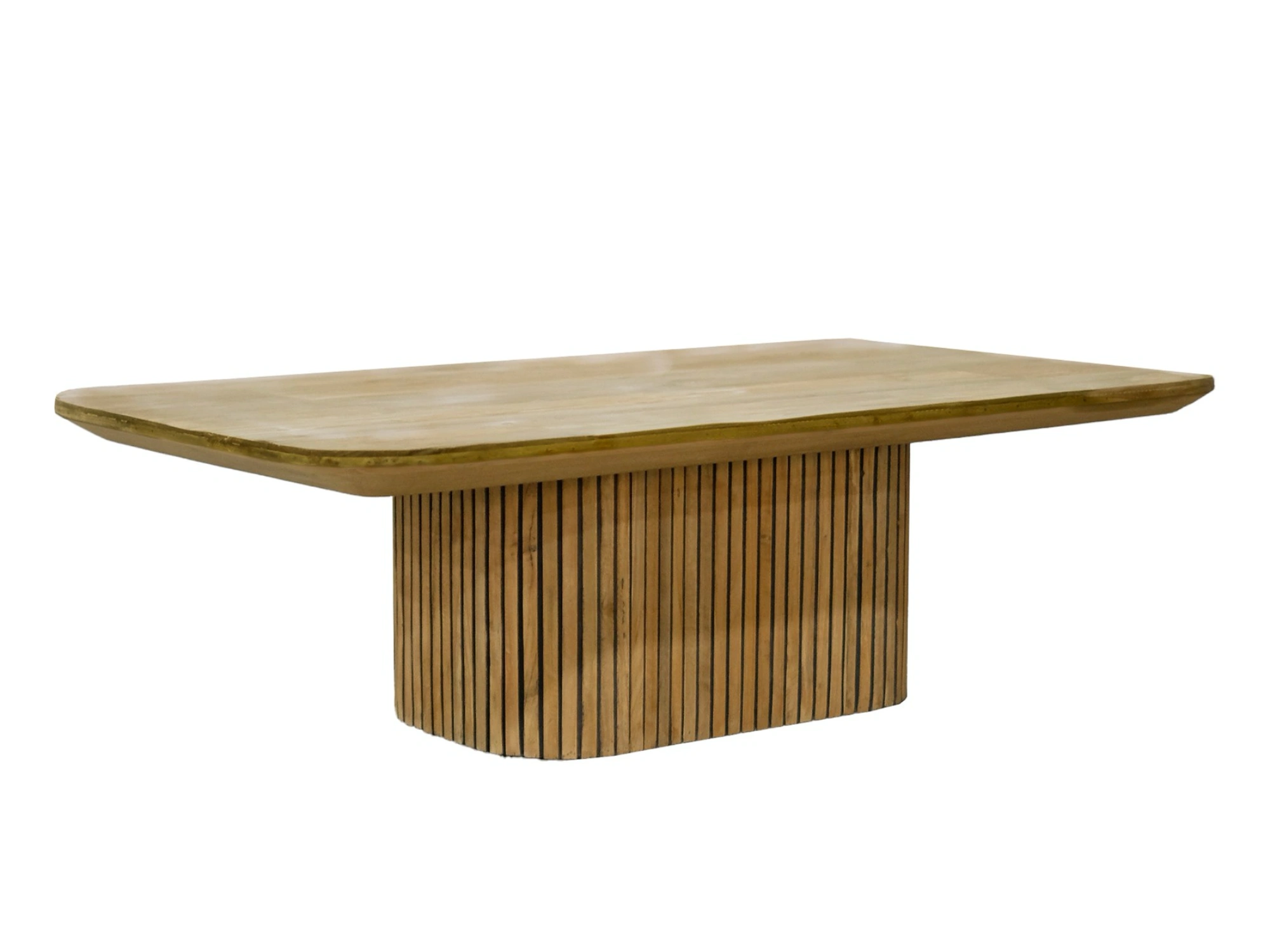 La Lau T230 est une table de salle à manger en teck très tendance, équipée d'un pied central à lattes. Cette table est dotée d'une base élégante et d'un plateau arrondi. La base de cette table de salle à manger en teck est un pied en bois.