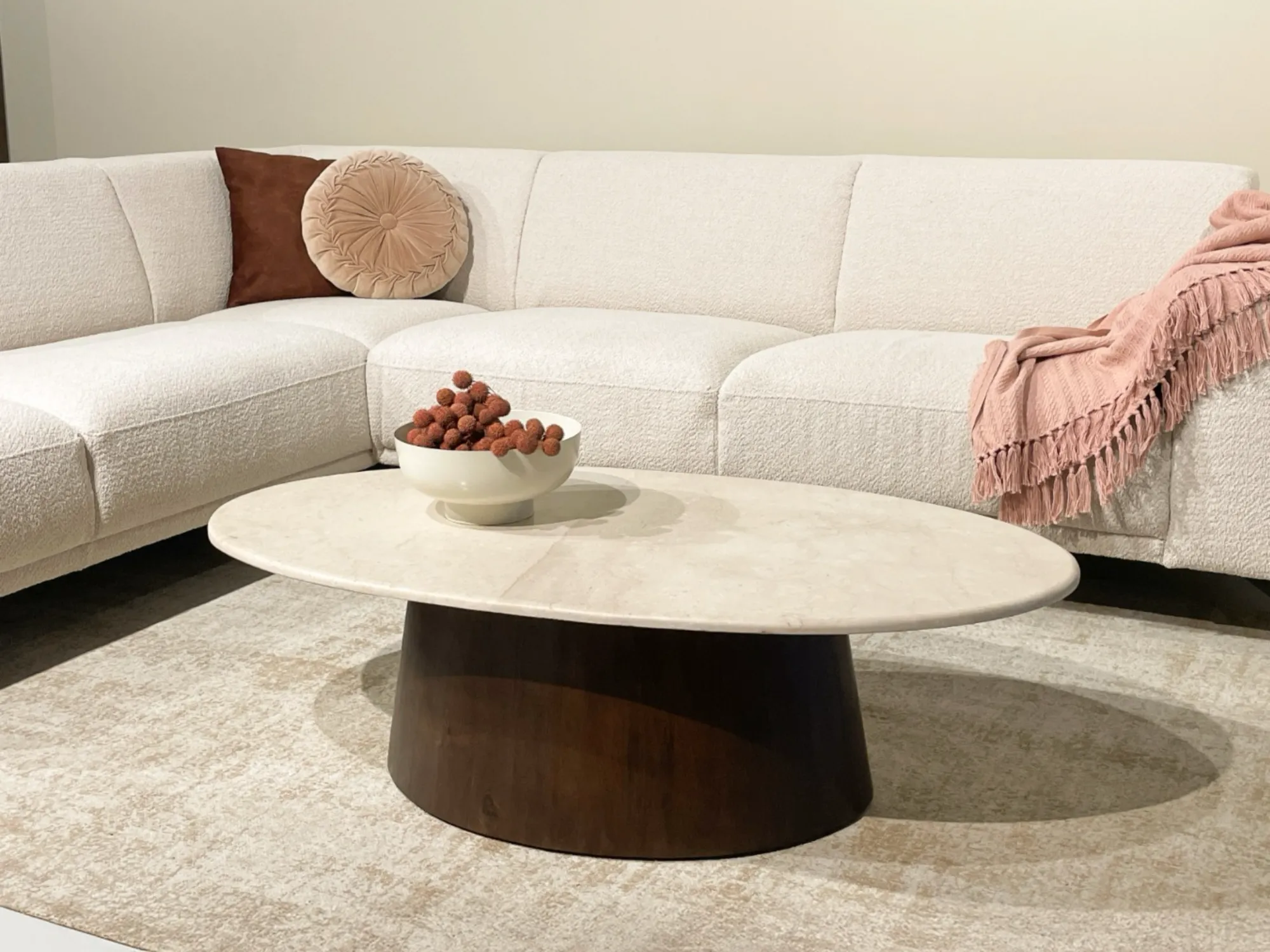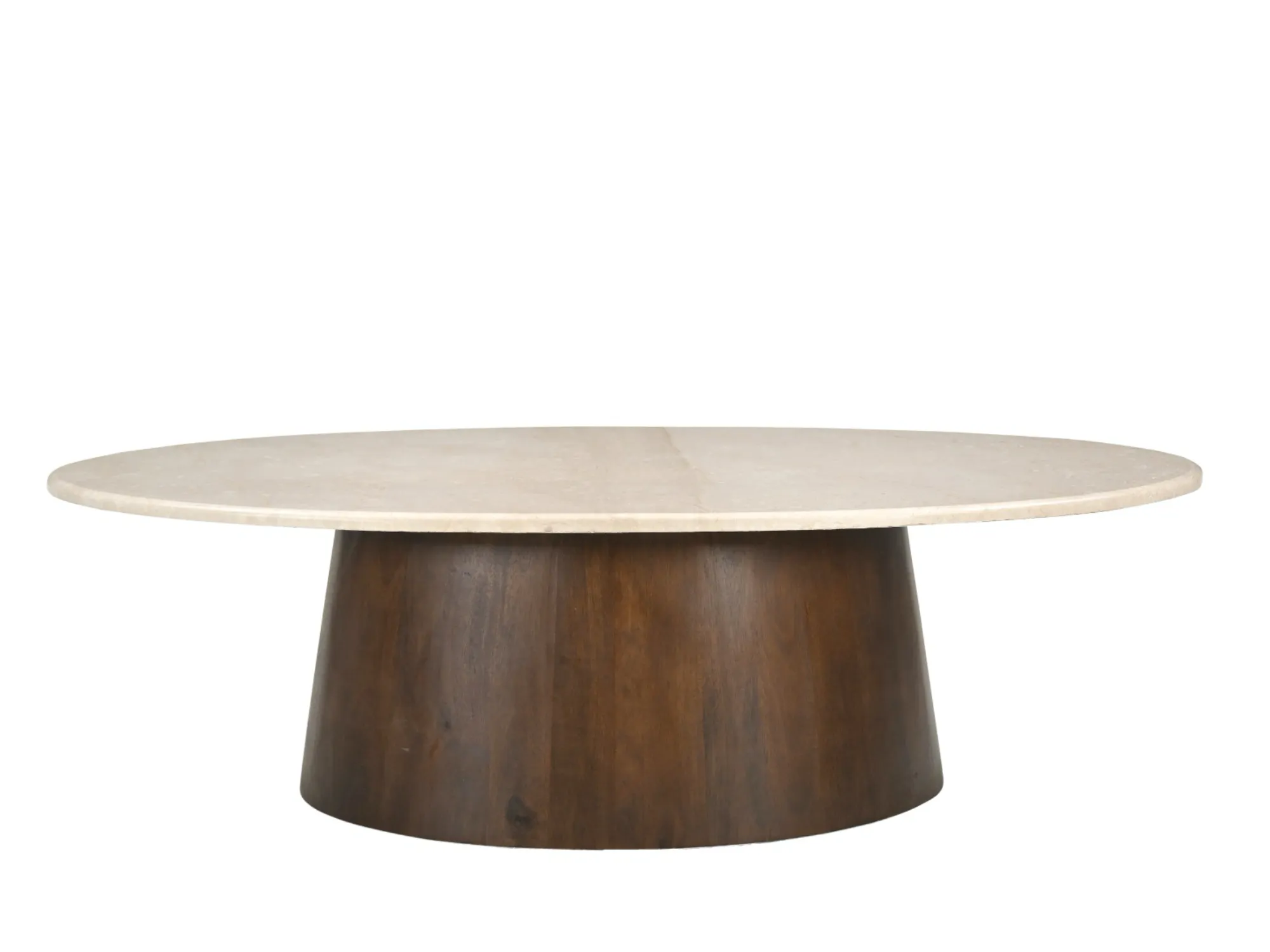 De Brix Bot SO120 is een trendy marmeren ovale salontafel met hout. Deze tafel is uitgevoerd met een stijlvol marmeren blad en typeert zich door de combinatie met houten onderstel en ovale vorm. Het onderstel van deze trendy marmeren ovale salontafel is een houten poot.