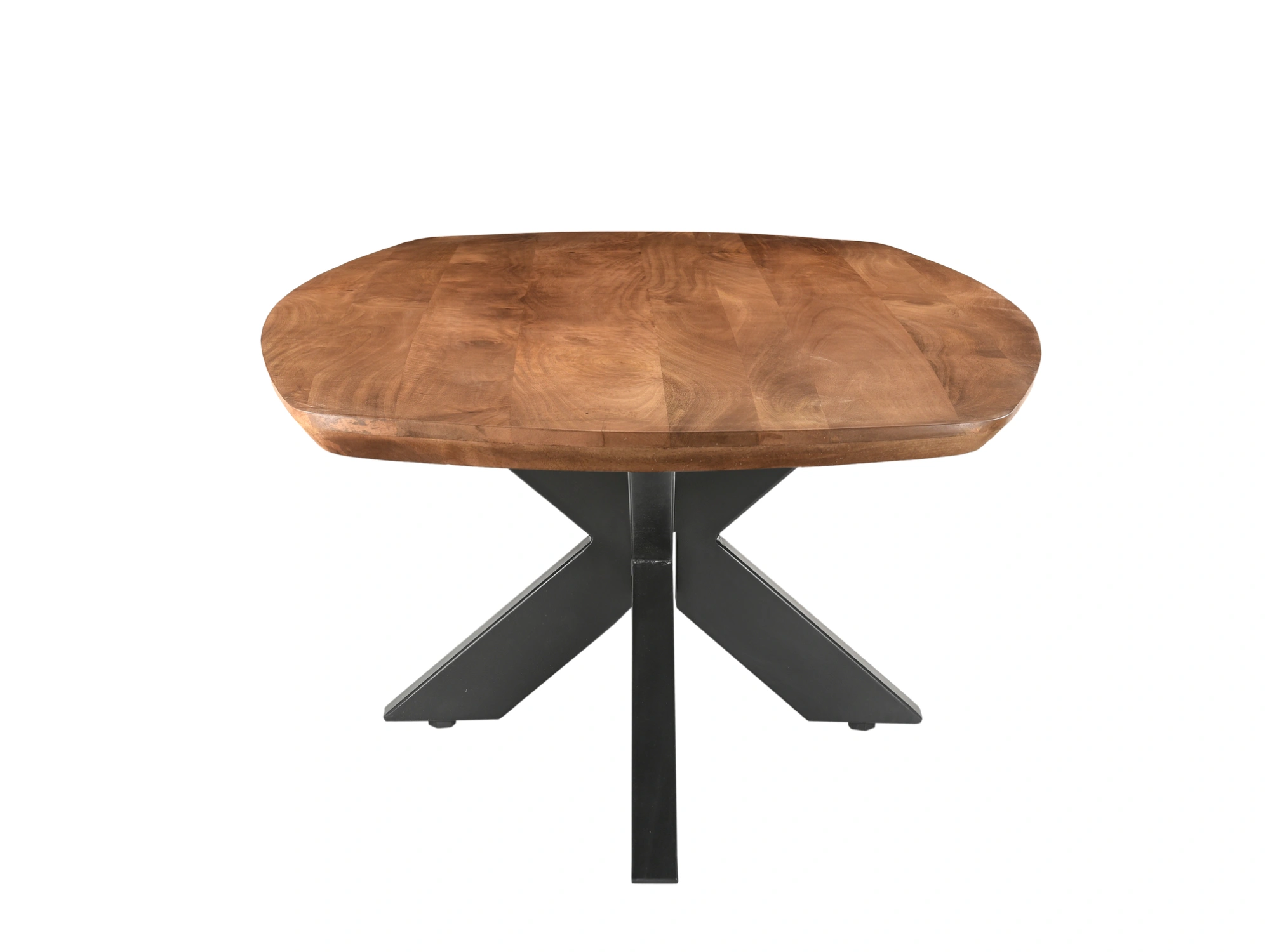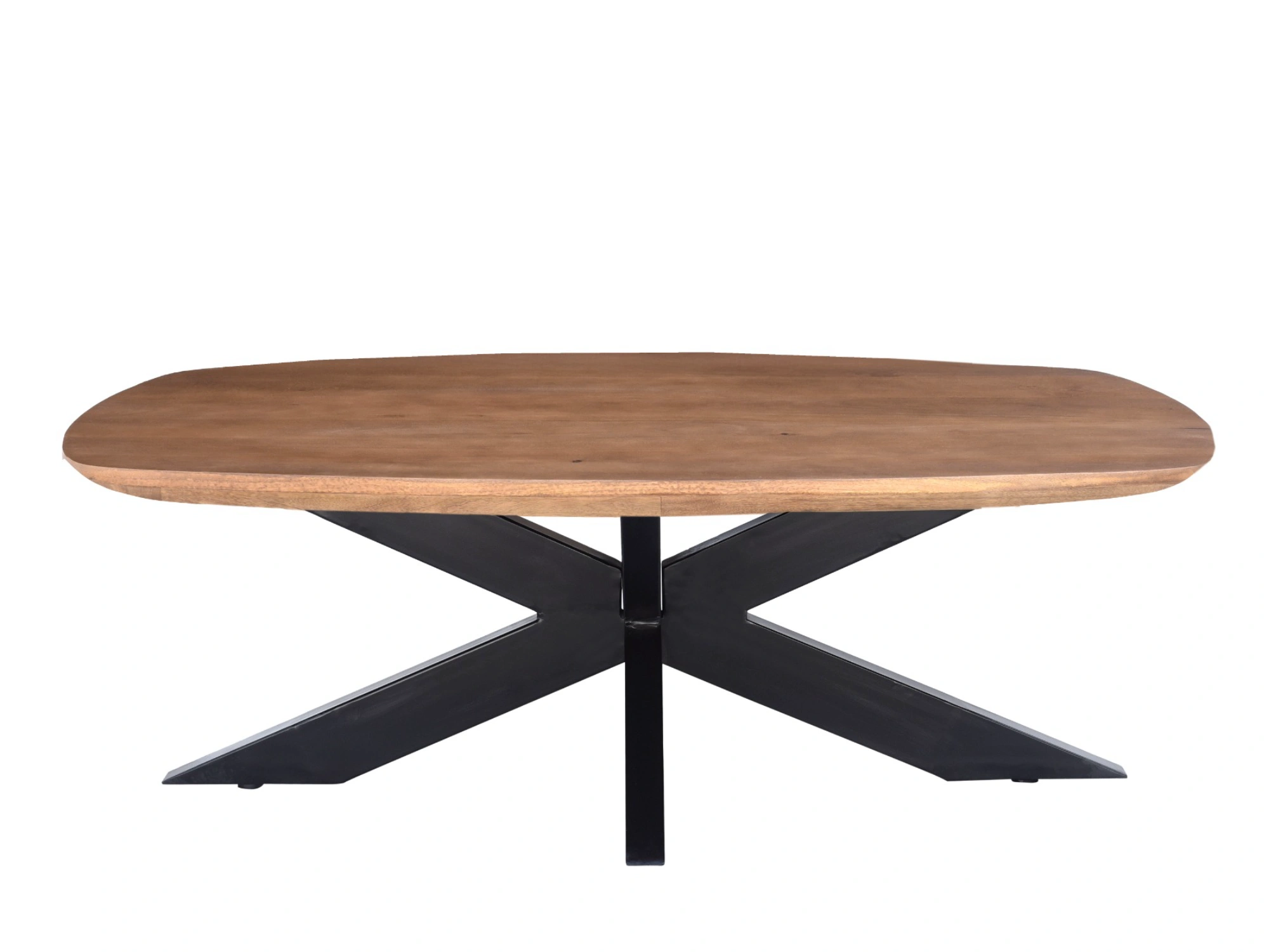 Naturel design salontafel in duurzaam hardhout met metalen poot. Deze salontafel is uitgevoerd met een spinpoot en Deens design ovaal blad.
