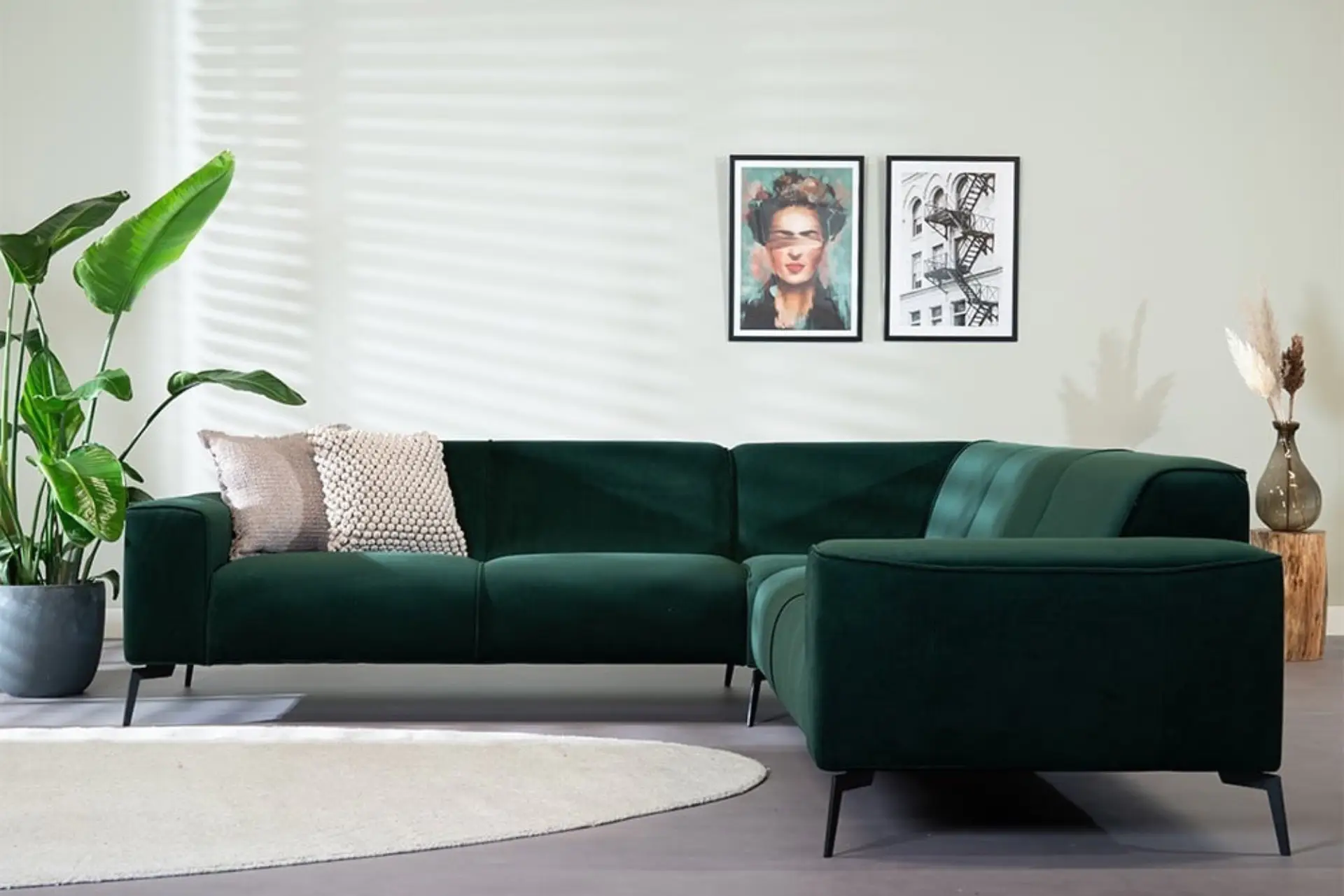 Deze duurzame, moderne en comfortabele hoekbank in velvet heeft een moderne uitstraling en past daardoor mooi in een industriële of moderne inrichting. Naast een modern interieur ook mooi bij een klassieke of landelijke stijl. Deze comfortabele hoeksofa kan o.a. dienen als grote hoekbank of comfortabele loungebank of lounge zetel voor in de woonkamer.