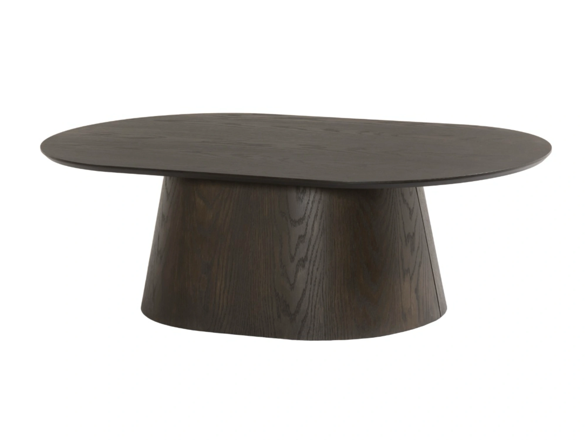De Nov SO120E is een trendy donkerbruine salontafel met een verfijnde, eikenhouten uitstraling. Deze moderne tafel is uitgevoerd met een ovaal houten blad en typeert zich door de eikenhouten look en ovale onderstel. Het onderstel van deze elegante salontafel is een houten poot.